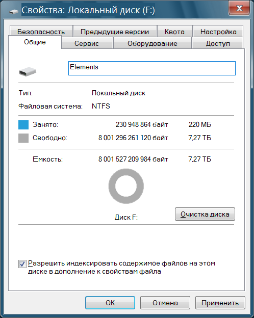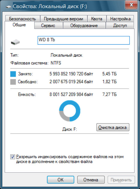 Увидеть полный объем не удалось ни изменяя последовательно размер кластера от 4 до 128 секторов, ни проведя разбиение на 3 логических диска по 3 Тб, 3 Тб и 2 Тб (в тв виден только первый).