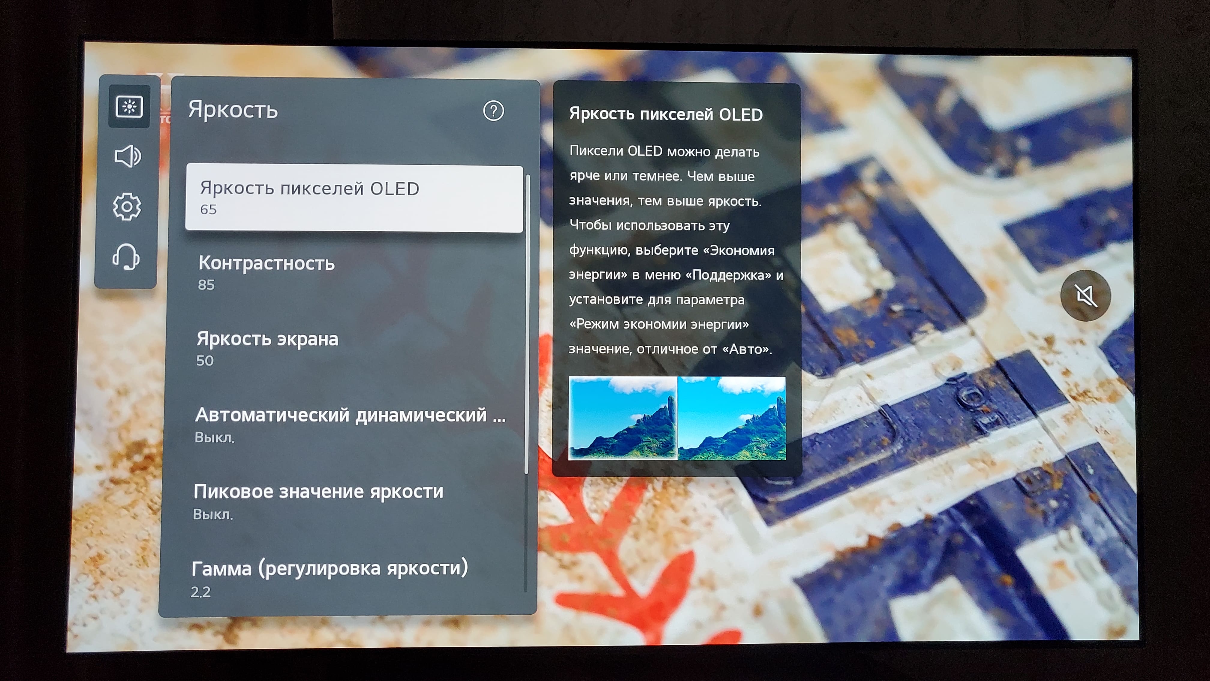 о какой настройке речь (яркость пикселей OLED или общая яркость экрана)? Для понимания о чем вопрос http://kr.eguide.lgappstv.com/manual/w2 ... ings.html#