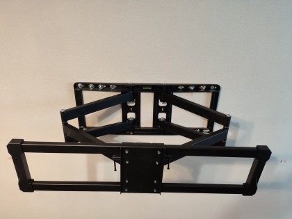Ну и соответственно кронштейн позволяет это сделать, так как сперва прикручиваются палки к телевизору, кронштейн к стене, а потом просто можно взять телевизор снизу и за палки и зацепить на кронштейн, и придерживая закрутить защелки. То есть не нужно держать телевизор полностью "навесу", пока прикручиваешь.