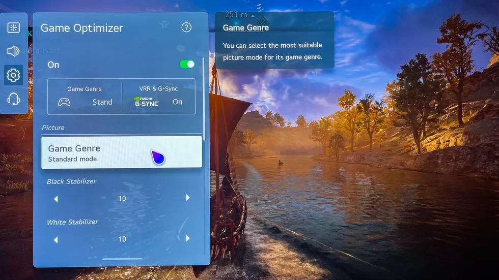 Превосходное качество изображения G1 распространяется и на игры, а некоторые из его самых больших обновлений в 2021 году связаны с играми. Новый режим "Оптимизация игр" (Game Optimizer) - это название как режима изображения, так и системы полного меню.