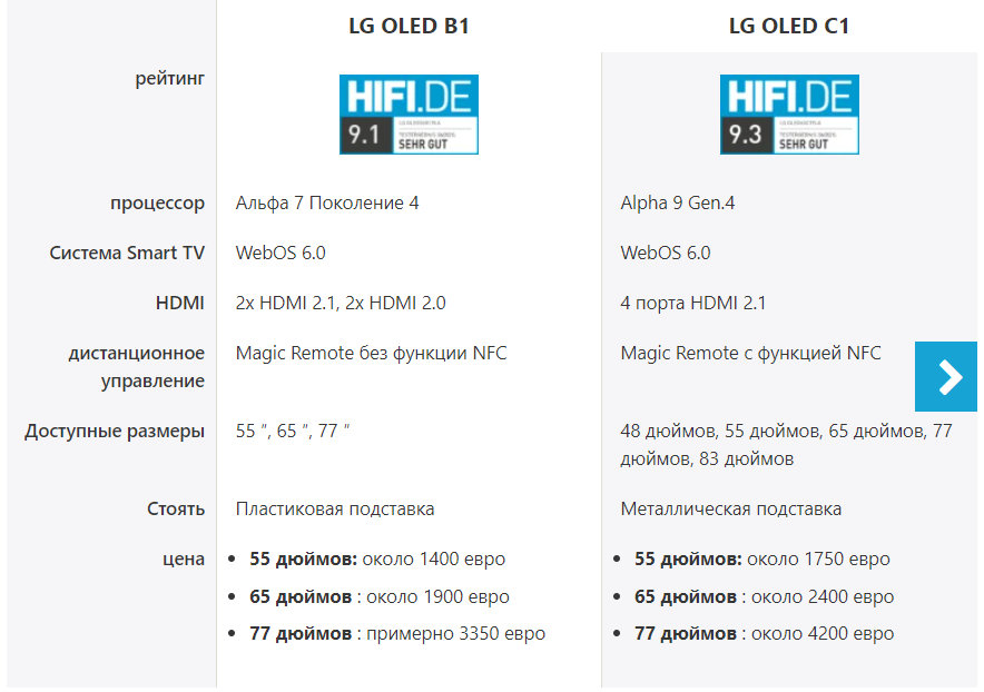 LG OLED B1 или LG OLED C1: в чем разница между двумя OLED-телевизорами от LG?