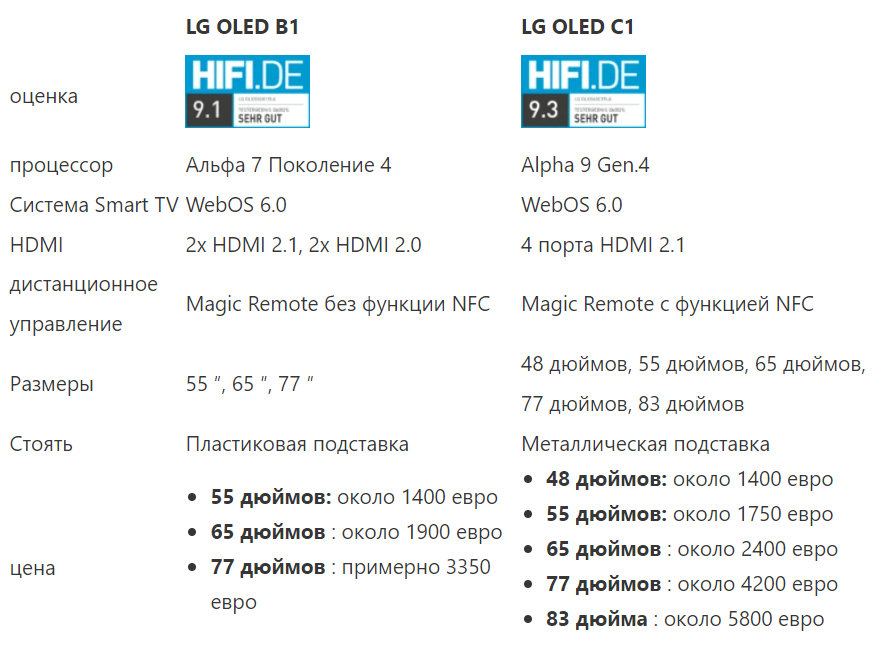 LG C1 ПРОТИВ LG B1: ЦЕНА И РАЗМЕРЫ