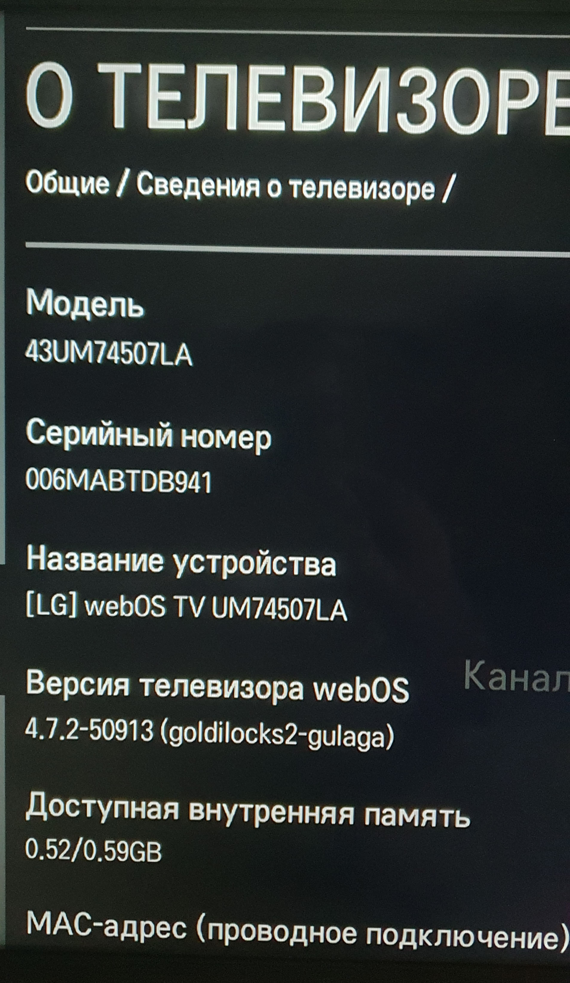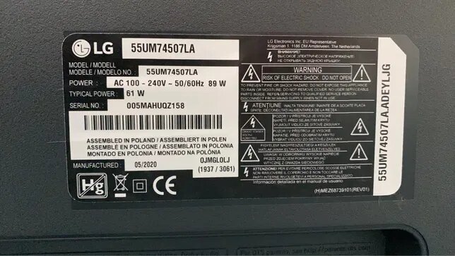 GanjeyСудя по некоторым признакам (несуществующий код продукта ADEYLJG, штрихкод не докодируемый в серийный номер, криво наклееная наклейка, версия webOS), Вам "не повезло" купить поддельный телевизор LG (см.
