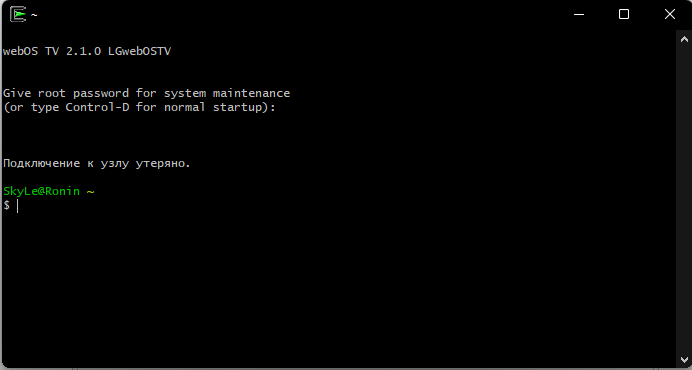fcbarca503 писал(а):Подскажите какой пароль вводить после команды "ssh -i tv_webos_key prisoner@192.168.x.x -p 9922"?