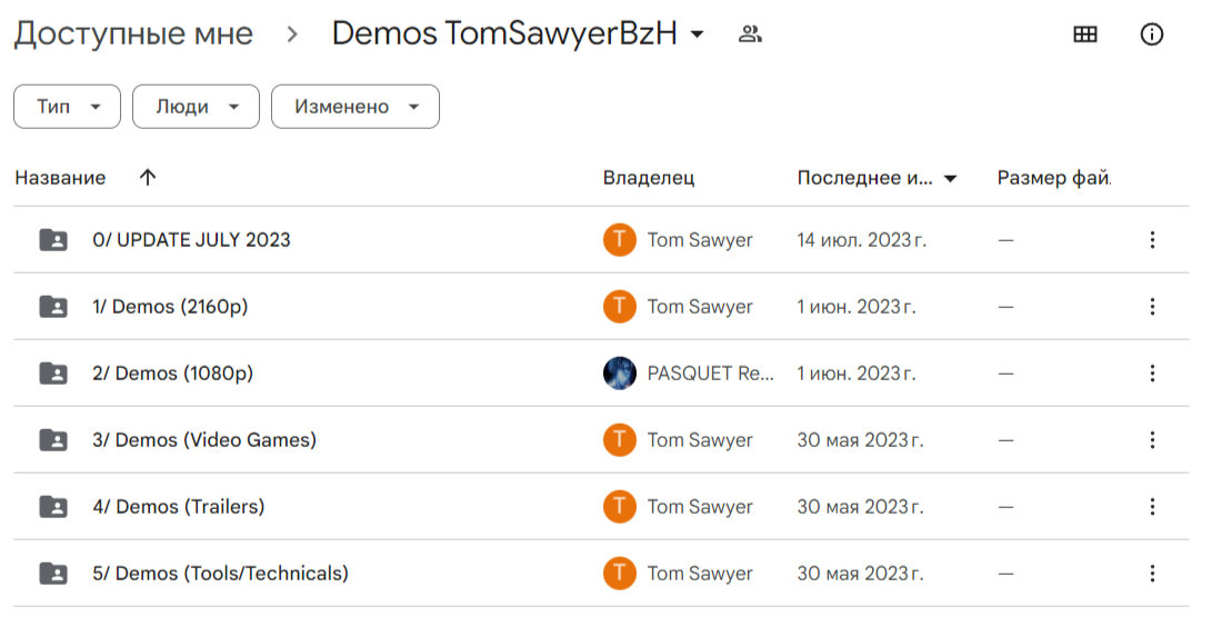 Множество демонстрационных роликов видео в разных кодеках и с разным звуком (Demos TomSawyer).