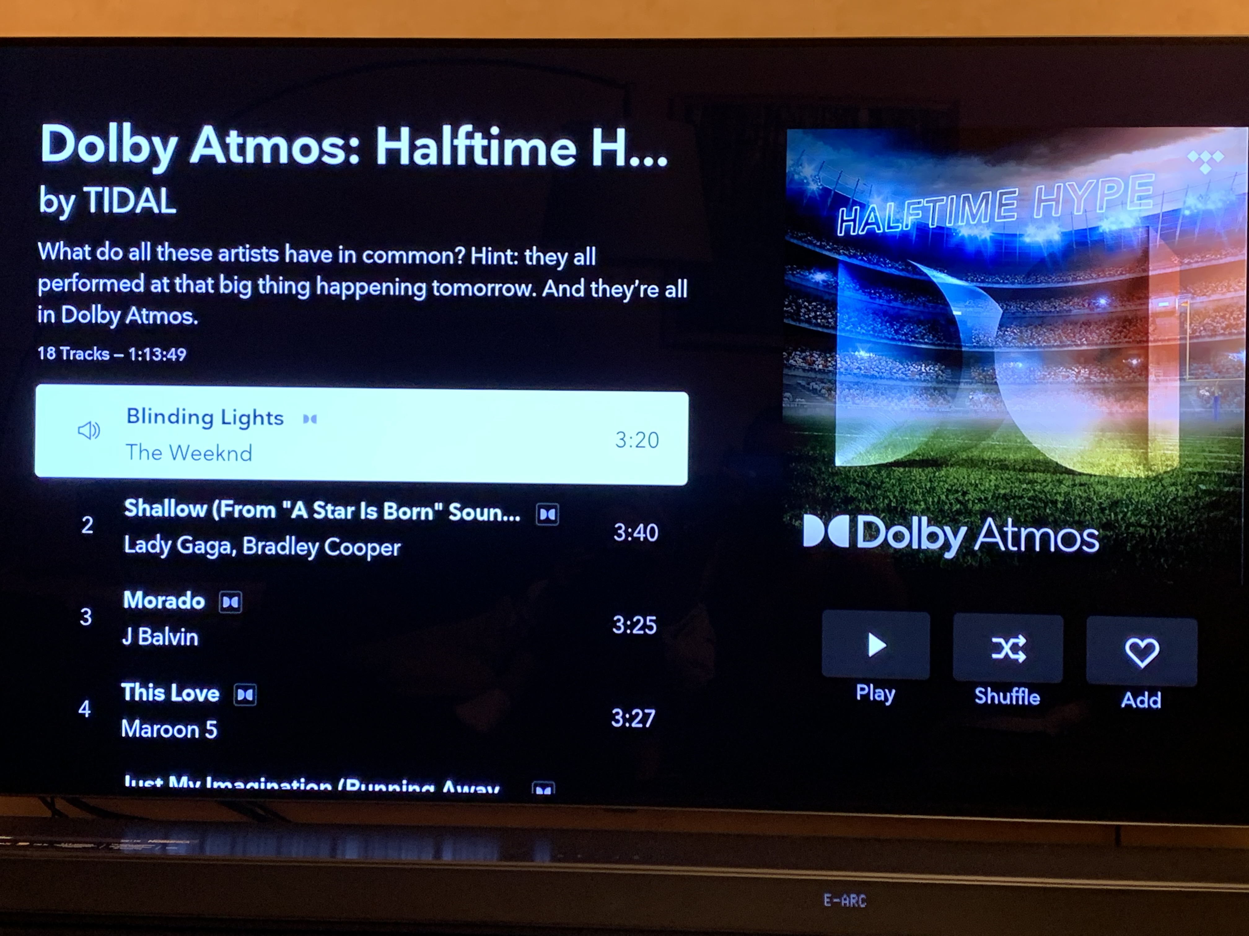 Через ТВ-приложения Tidal для LG пользователи смогут запустить контент в форматах MQA, Sony 360 Reality Audio и Dolby Atmos Music. Для этого нужна подписка HiFi. Чтобы получить полноценный Atmos-звук, понадобится соответствующая аудиосистема.