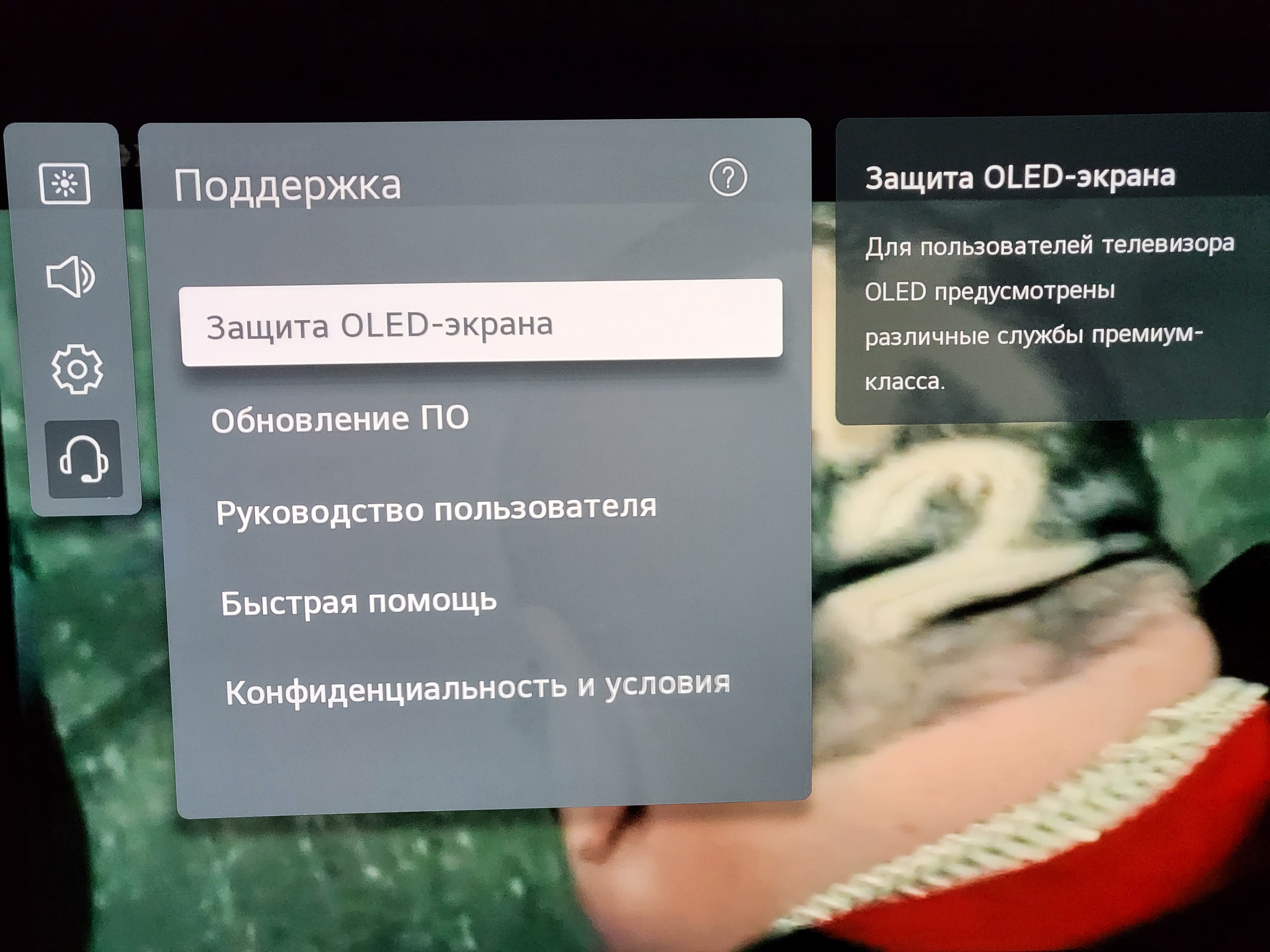 Главным нововведением этой прошивки является подраздел настроек "OLED Care" ("Защита OLED-экрана''), появившийся в разделе "Поддержка".