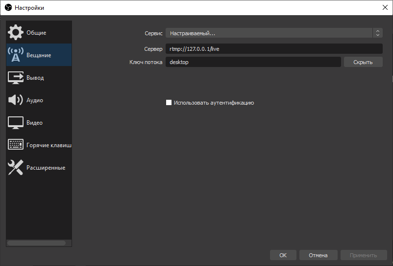 После этого можно закрыть окно настроек и запустить трансляцию в OBS Studio.