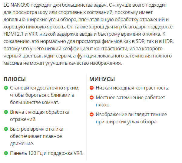 Отзывы пользователей о LG 55NANO92, 65NANO92, 75NANO92 и 86NANO92: