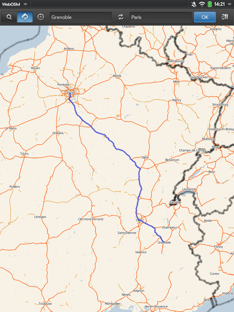 Приложение использует leaflet (легкая JavaScript библиотека) и интерфейс CloudMade API для построения маршрута. Поиск в настоящее время базируется на поиске Yahoo placesearch, но будут вскоре заменен на CloudMade-эквивалент .