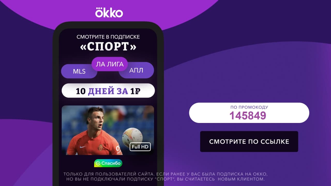 Добавлено спустя 34 секунды:Okko: 10 дней подписки «Cпорт»Okko Спорт — это раздел мультимедийного сервиса Okko, где на эксклюзивной основе транслируются матчи Английской Премьер-лиги, MLS, Кубка аргентинской Суперлиги в прямом эфире и в записи, а так же эксклюзивные материалы от редакции (интервью, обзоры и тд) ; ММА (Bellator, Brave, PFL) ; теннис (ATP250, Кубок Дэвиса).