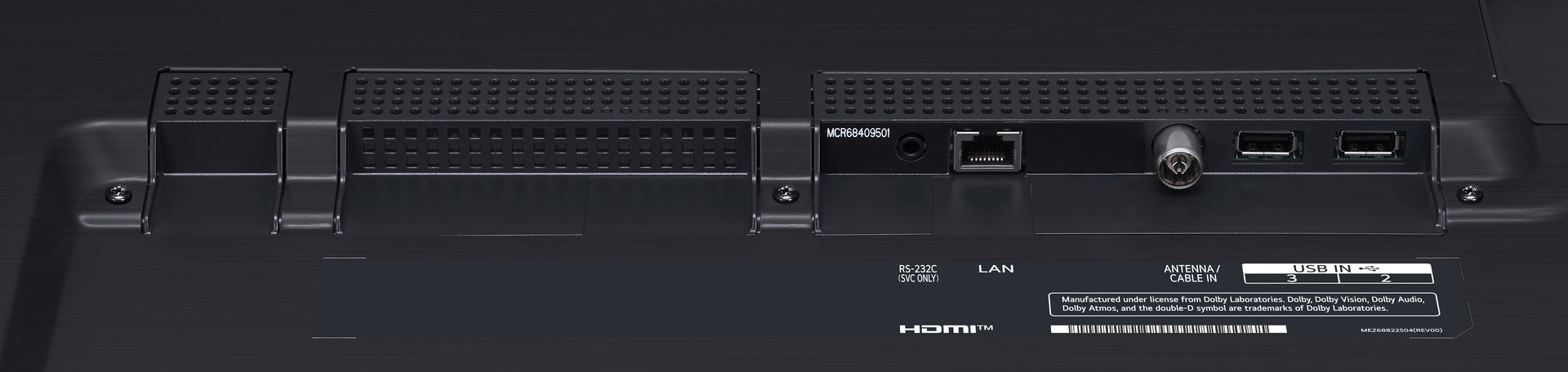 Задняя панель телевизора LG NANO90 оснащена следующими интерфейсами: 2 антенных входа (для спутникового и кабельного/эфирного ТВ), компонентный AV-вход (в версии для США), один порт LAN (со скоростью 100 Мбит/сек), два порта USB (версии 2.0). Что касается аудио, то на этой же панели расположен только выход 3,5" для наушников.