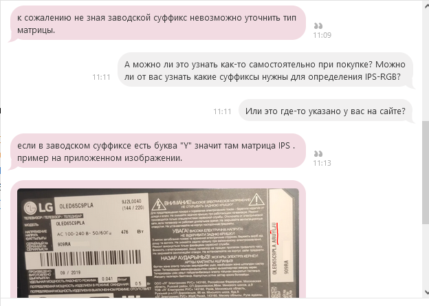 death7lord писал(а):Привет. Появилась новая информация. Владелец "Алексей" оставил ответ на вопрос в Ситилинке https://citilink.ru/product/televizor-l ... pros-otvetМне попалась ADS матрица от BOE (как пишут улучшенная IPS). Буква G после DRU. Брал 03.01.22.