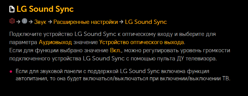 narpol писал(а):Тут только вопрос, является используемое устройство, устройством с поддержкой LG Sound Sync