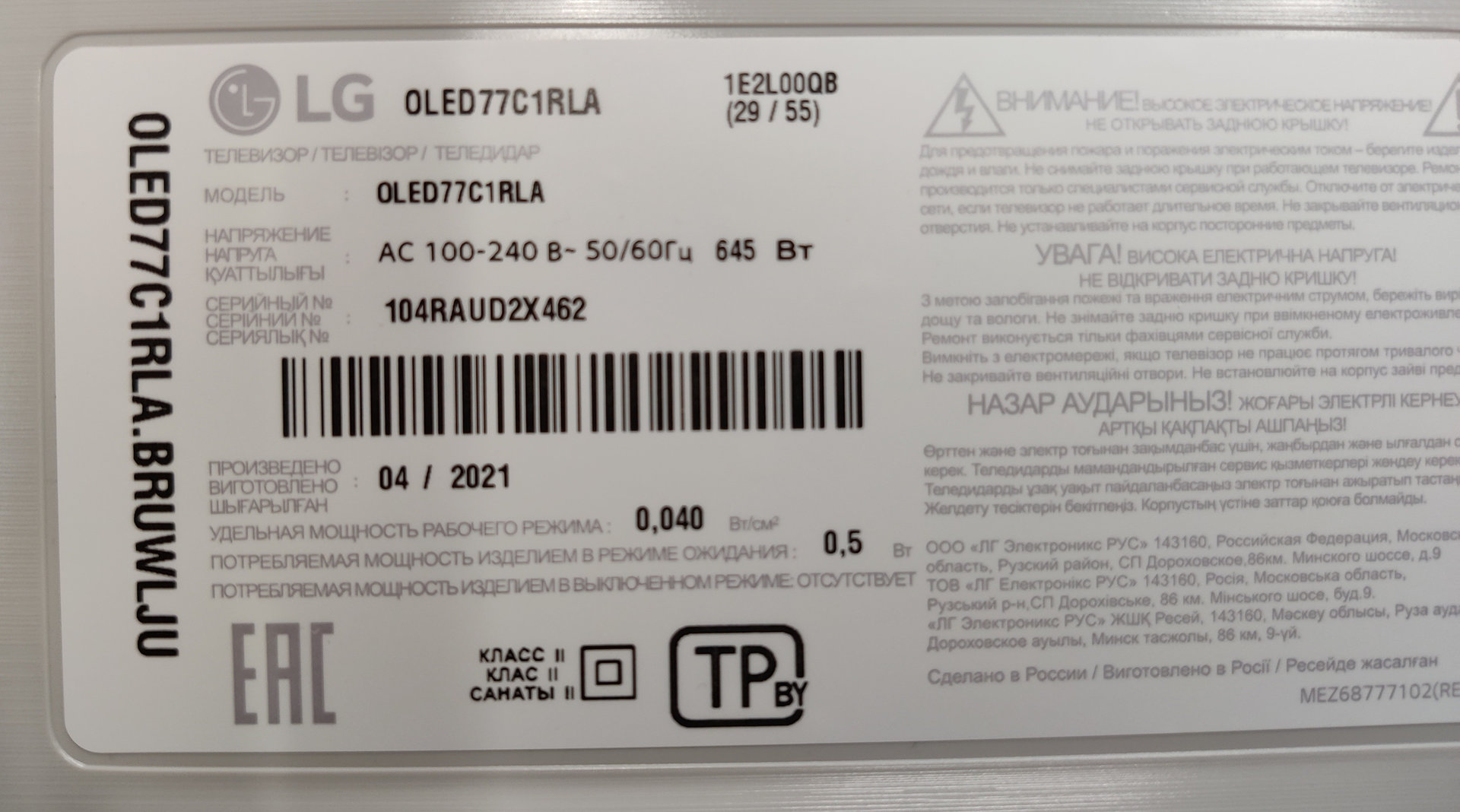 Мне пока непонятно следующее: наличие 2-х символьных обозначений для одного и того же производства и типа панели - это просто чередование годов производства (четный/нечетный)?P - LG Display, Гуанчжоу, Китай, поколение 8.5 (2200 x 2500 мм, OLED-панели 48-83 дюйма, WBE / MMG / GZ)