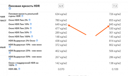 Слева пиковая яркость HDR на LG. Справа на Сони.