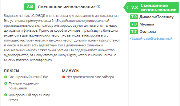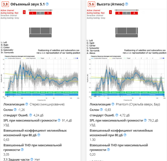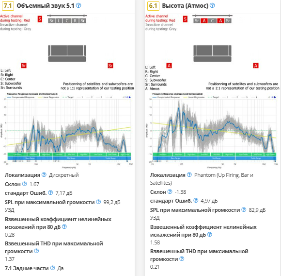 Еще одним компонентом впечатления от прослушивания с высотным контентом является звуковая сцена. Хотя это не отражается на счете, субъективно кажется, что панель неплохо справляется с задачей создания захватывающего впечатления от прослушивания. Кажется, что большая часть действия сосредоточена перед вами, и панель не дает ощущения, что звуковые объекты исходят сбоку или сзади вас?, но это довольно типично для панели без тыловых сателлитов. Если вам нужна панель с лучшей производительностью Atmos, обратите внимание на LG S95QR.