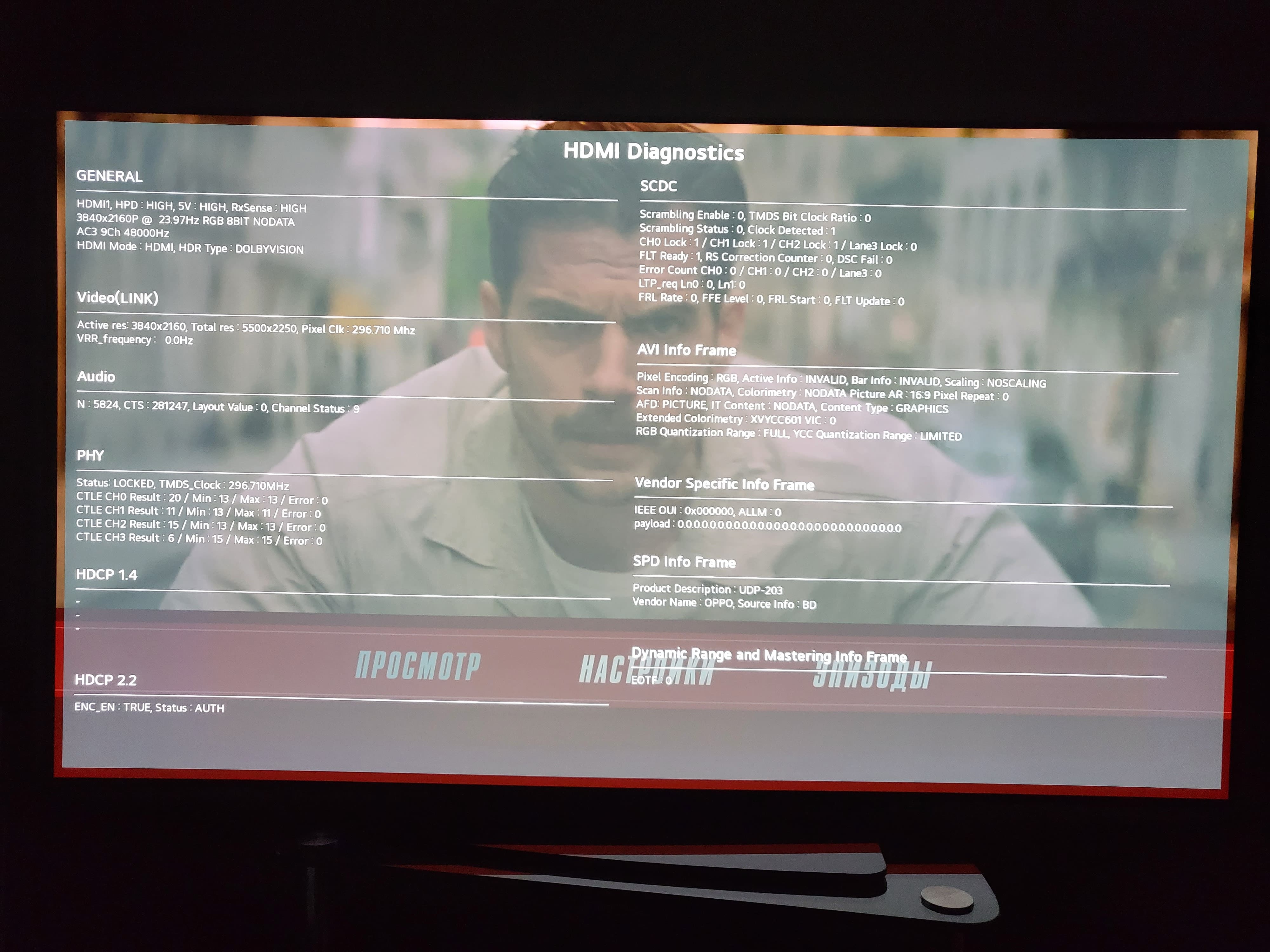 Режим экрана например можно посмотреть. Ну или в меню HDMI зайти, нажав пять 1 на вкладке каналы. Но раз значек DV не зажигается, значит телек в этот режим не переключается. Может и Ваш амбилайт виноват. А может дюна что то не так отрабатывает. Вообще не понятно зачем Вы mp4 через нее смотрите, когда эти релизы для внутреннего плеера делаются в основном...