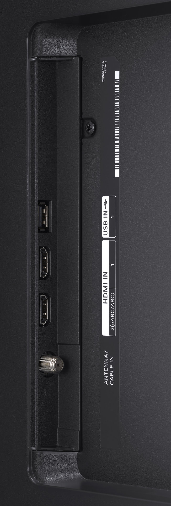 Боковая панель UP7800 оснащена одним портом USB (версии 2.0), двумя входами HDMI v.2.0 (один из которых совместим с ARC и eARC), двумя антенными входами (для спутникового и кабельного/эфирного ТВ) и слотом условного доступа CI+.
