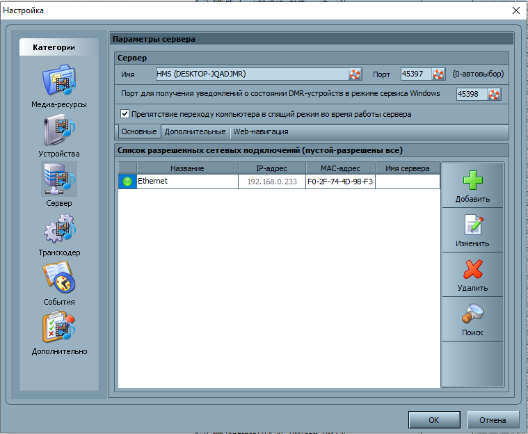 Ni9999 писал(а):dremk1n, для начала список на втором скрине оставь пустым, и сними галку автоматического добавления. Антивирус есть? В нем тоже бывает файрвол. Так же в роутерах бывает функции фильтрации (нас интересует мультикаст/броадкаст, но это частности), хотя бы на время непоняток подобное стоит потушить. Далее в настройках HMS полезно его установить как сервис Виндовс, меньше проблем с правами доступа самой винды. И хотелось бы взглянуть на вкладку Сервер с твоего скрина.