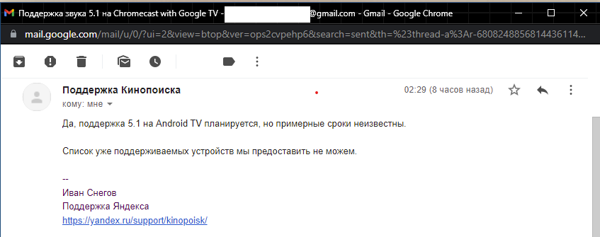Поддержка Кинопоиска про звук 5.1 на Chromecast с Google TV.