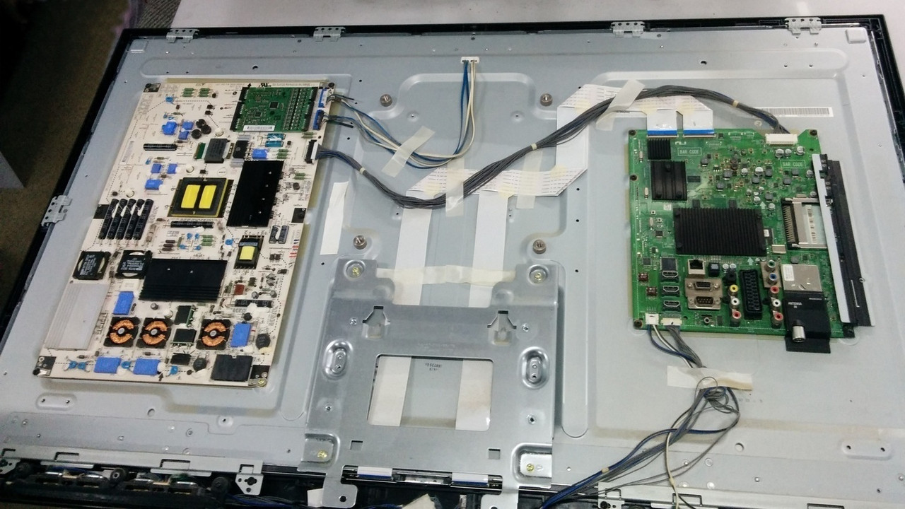 Что я делал: 1. Разобрал 42LE5500 2. Отсоединил два шлейфа от матрицы и подключил их к t-con от 39LB580V 3. Запустил оба телевизора 42LE5500 - он работал исключительно для того, чтобы подсвечивать экран, так как блоки питания и подключение подсветки экрана у них отличаются 3.1 Запустил main board 39LB580V