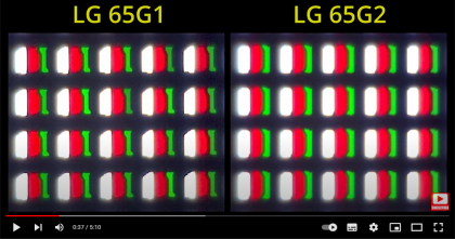 LG G2 использует новейшую панель OLED Evo компании с разрешением 4K и поддержкой HDR. Эта панель содержит переформулированные материалы с более точными длинами волн для расширенной цветовой гаммы и также использовалась в LG G1. Тем не менее, LG G2 также включает в себя технологию Brightness Booster Max, которая использует технологию рассеивания тепла для увеличения общей яркости на 30%.