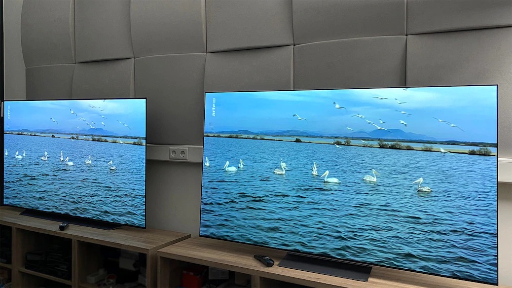 Сравнение LG OLED G2 (справа) с предыдущей моделью ясно показывает преимущества нового поколения OLED, но, к сожалению, сфотографировать различия невозможно.