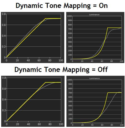 Исторически сложилось так, что вы могли проводить измерения и сравнивать HDR с DTM включенным и выключенным, и это выявило бы существенные различия. Фактически, вы все еще можете делать это на G3 в режиме Кинотеатр HDR, и разница в отслеживании EOTF будет разительной.