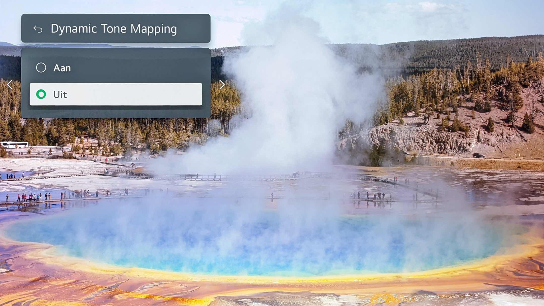 В режиме Filmmaker Mode эффект менее сильный и не вызывает каких-либо явных проблем. В общем, мы обнаружили, что динамическое тональное отображение лучше отключить.OLED65G36LA (серия G3) имеет достаточно света и хорошее статическое отображение тонов, так что вы на самом деле мало что теряете. Только на очень темных изображениях Dynamic Tonemapping лучше передает черные детали.
