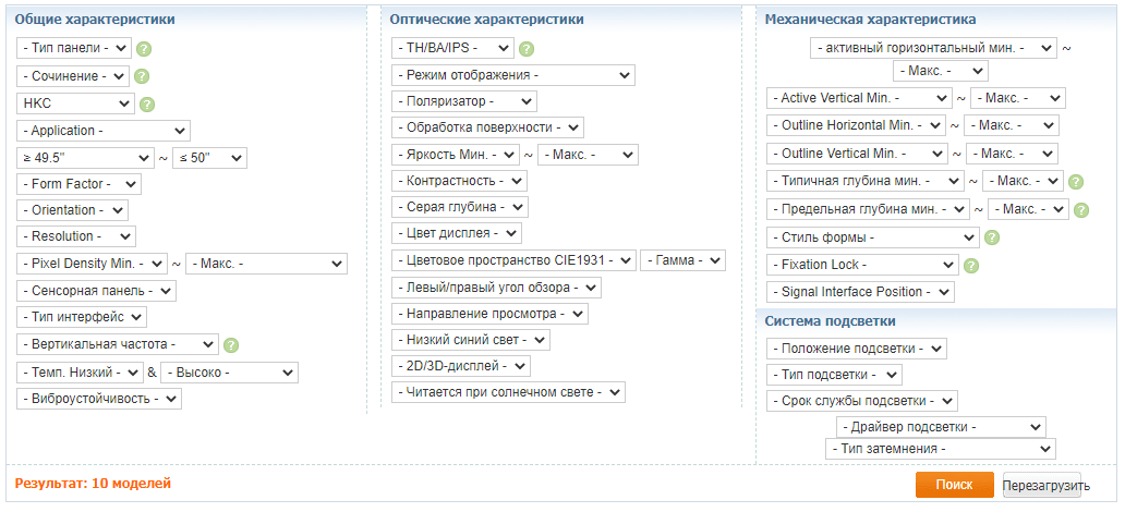 находится всего 10 моделей, из которых 8 в производстве (2 уже сняты):