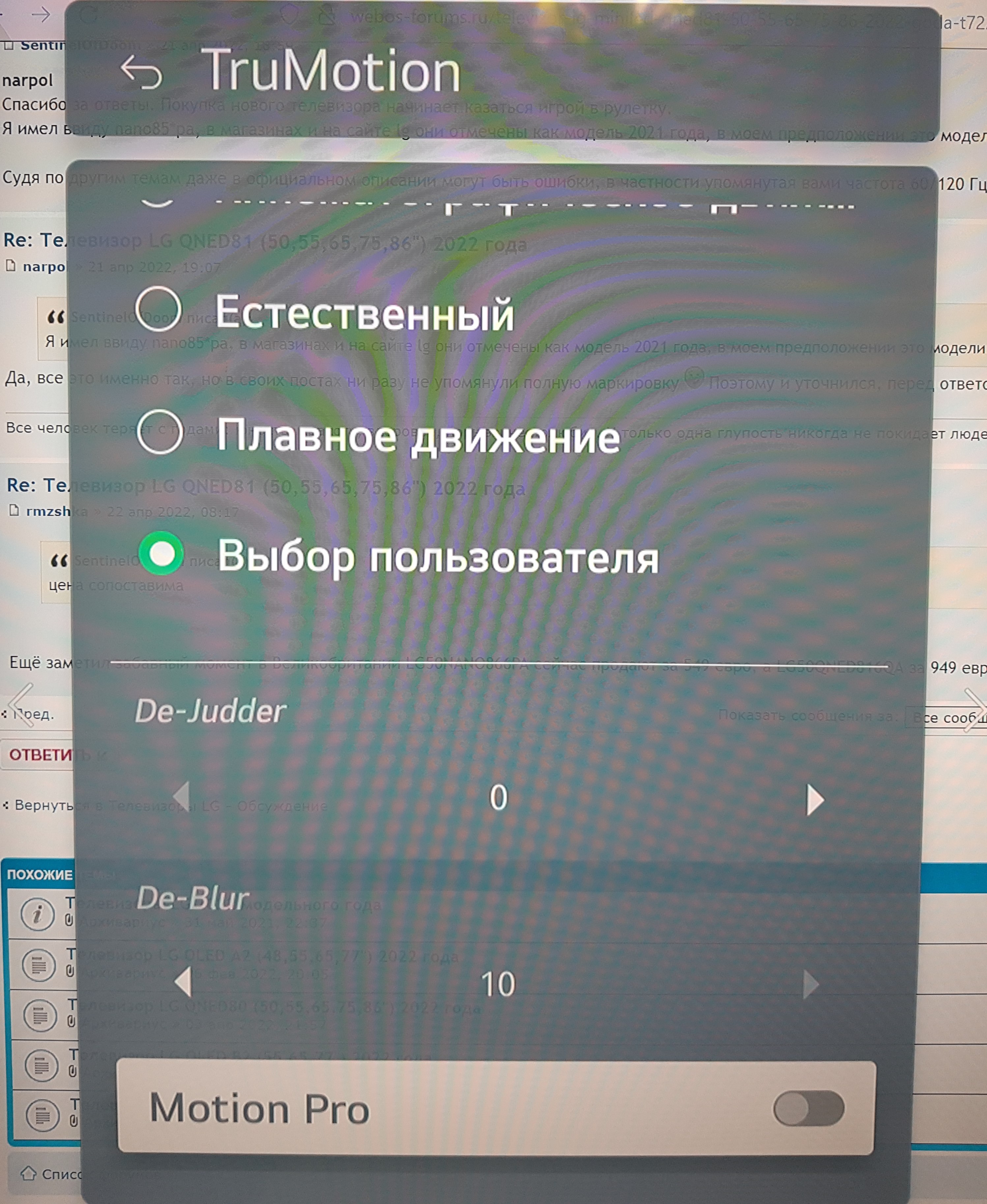 1) В настройках экрана есть ползунки "de-blur" и "de-judder". Фото.