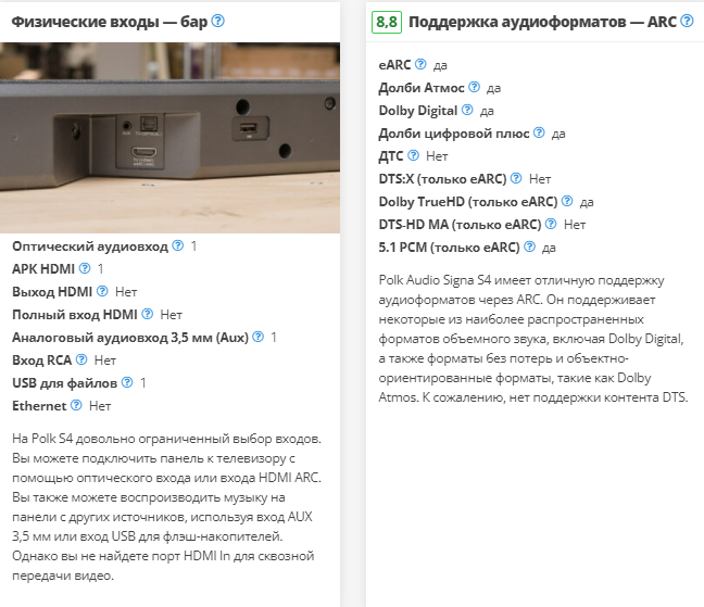 Polk Audio Signa S4 — это установка версии 3.1.2, выпущенная в 2021 году. Это топовая панель в серии Polk Signa, и, в отличие от Polk Audio SIGNA S2, она поддерживает контент Dolby Atmos. Его слегка V-образный звук добавляет вашей любимой музыке дополнительную мощь в басах и яркость в высоких частотах. Диалог по-прежнему воспроизводится очень четко, и есть даже настраиваемая функция улучшения диалога, которая позволяет вам контролировать, насколько громко звучат голоса в миксе. Тем не менее, ему не хватает глухого низкого баса, так что вы не почувствуете волнения в боевиках и музыке с тяжелыми басами.