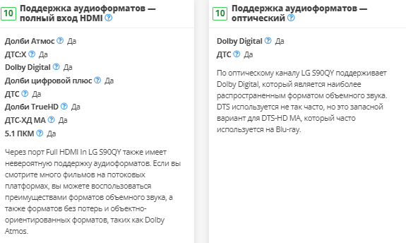 Как и многие другие производители звуковых панелей, LG предлагает функцию, позволяющую подключить LG S90QY к совместимым телевизорам LG, — она называется TV Sound Mode Share. Проверьте меню «Звук» вашего телевизора, чтобы убедиться, что вы находитесь в «Наслаждайтесь режимом звука звуковой панели» вместо «Наслаждайтесь режимом звука телевизора», чтобы эта функция работала — в противном случае он может преобразовать форматы более высокого качества, такие как Dolby Atmos, в контент PCM. Производитель говорит, что эта функция улучшает качество звука, но, как и в случае с большинством других функций, при ее включении в звучании нет большой разницы. Вы можете увидеть результаты частотной характеристики панели здесь — едва ли есть какая-либо разница между «Режимом звука звуковой панели» и «Выкл. », Но ухудшение качества с «Режимом звука ТВ» очевидно.