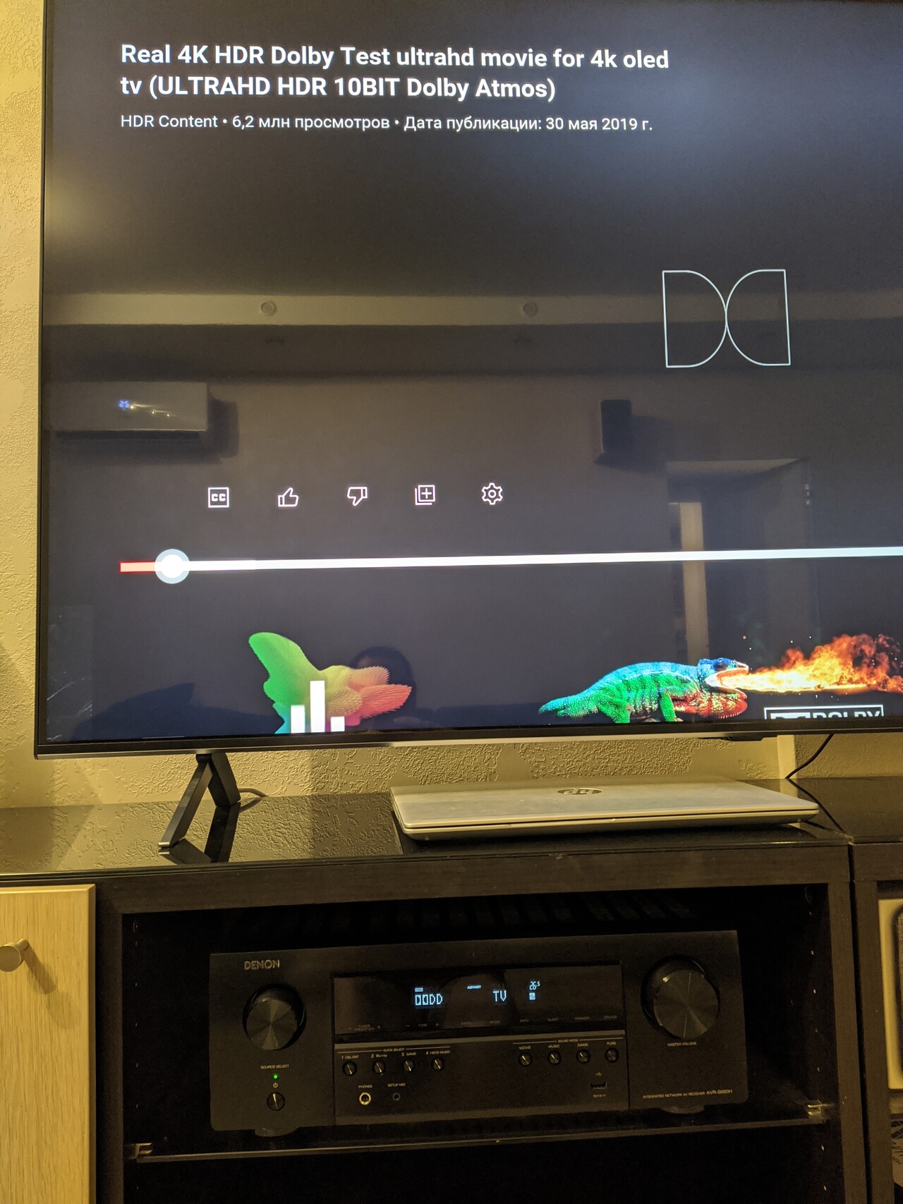 Ну HDMI eARC воткнут в Denon S660H + колонки. Эфект крутящегося шарика вокруг головы присутствует.