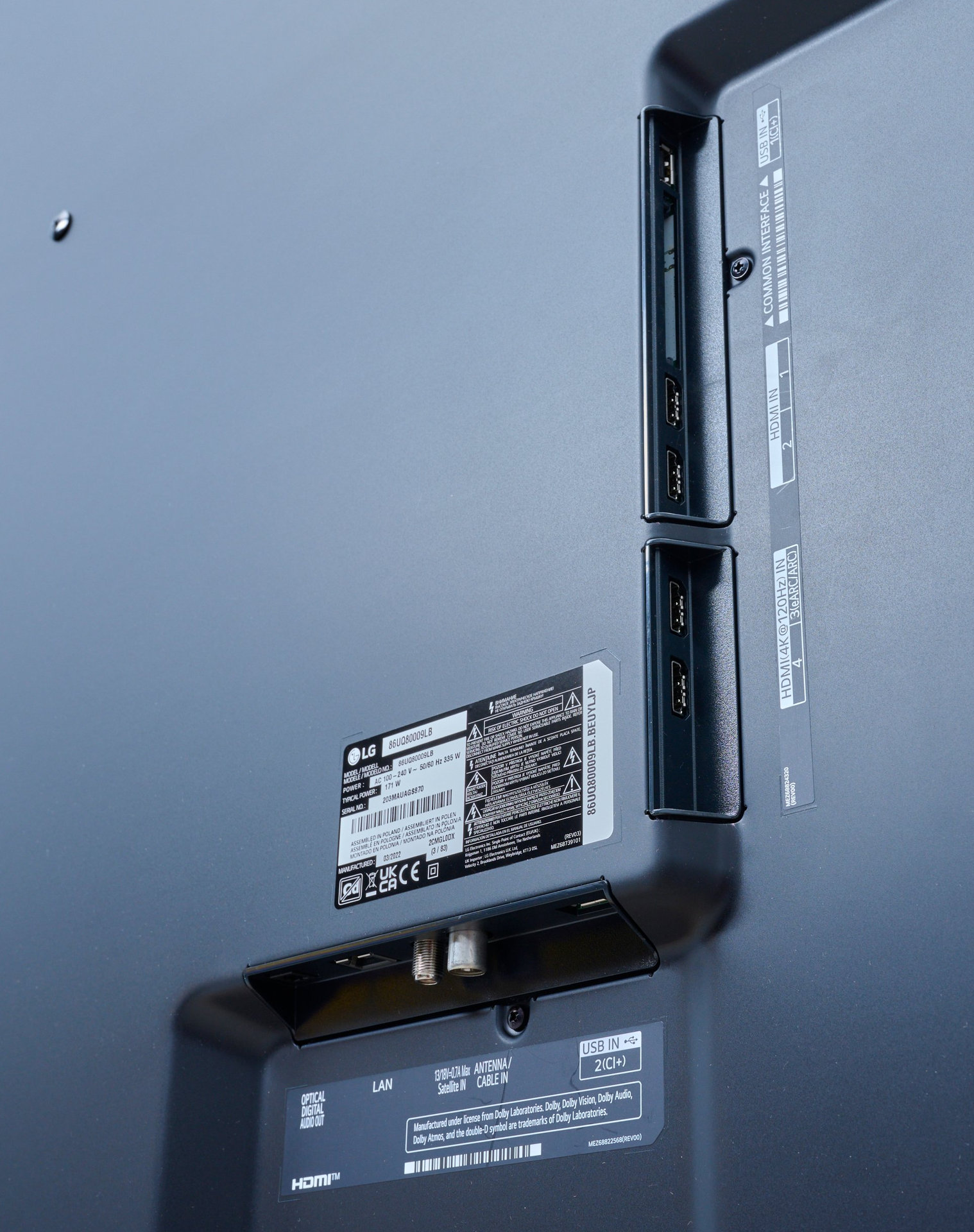 Соединения LG UQ8000На 86-дюймовом UQ8000 вы найдете четыре порта HDMI, два из которых поддерживают игровые функции HDMI 2.1 120 Гц с переменной частотой кадров ( VRR ) . HDMI - eARC доступен для удобной стыковки саундбара .
