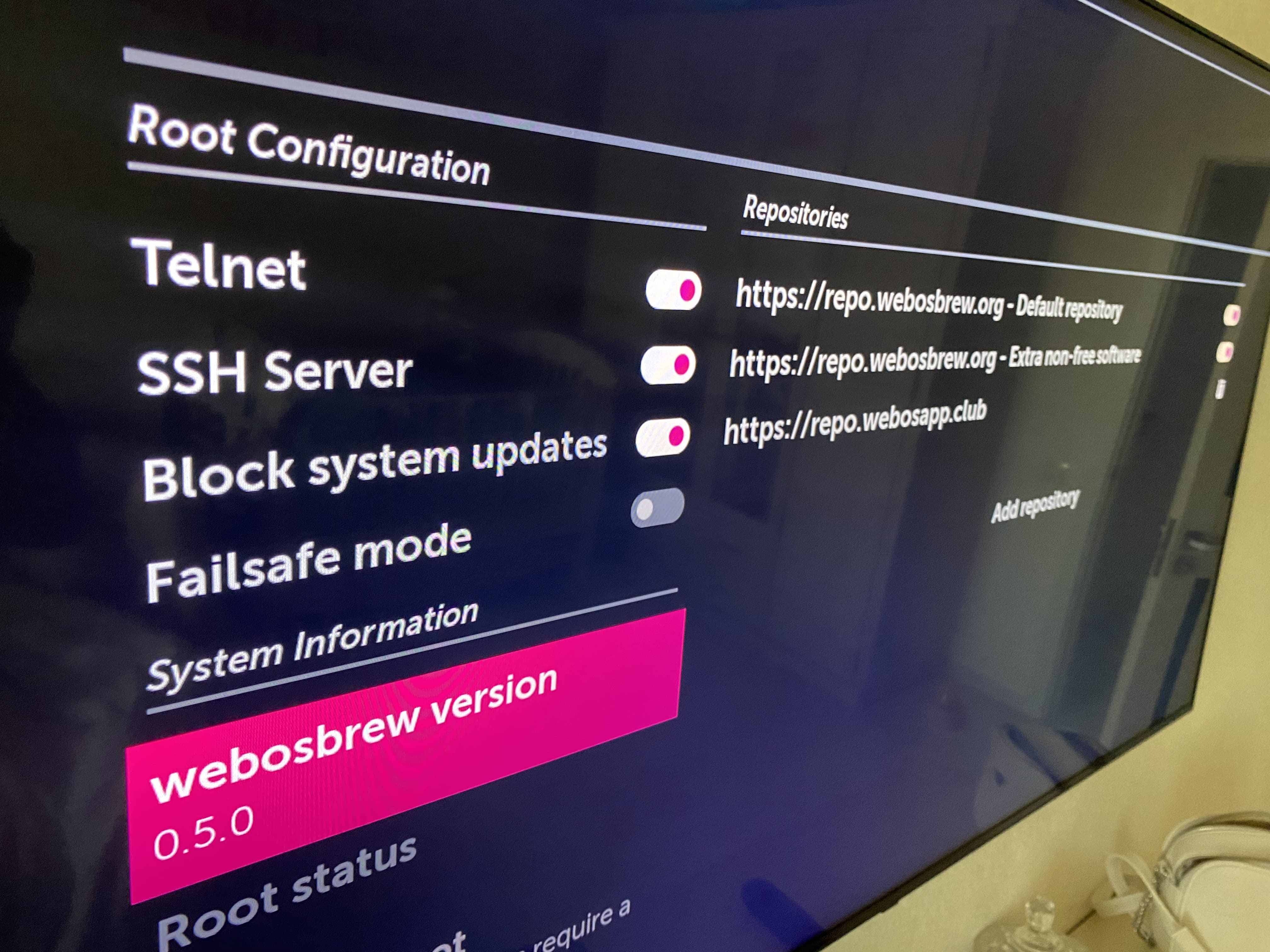 Какой статус рута в homebrew и какая версия прошивки на телевизоре?
