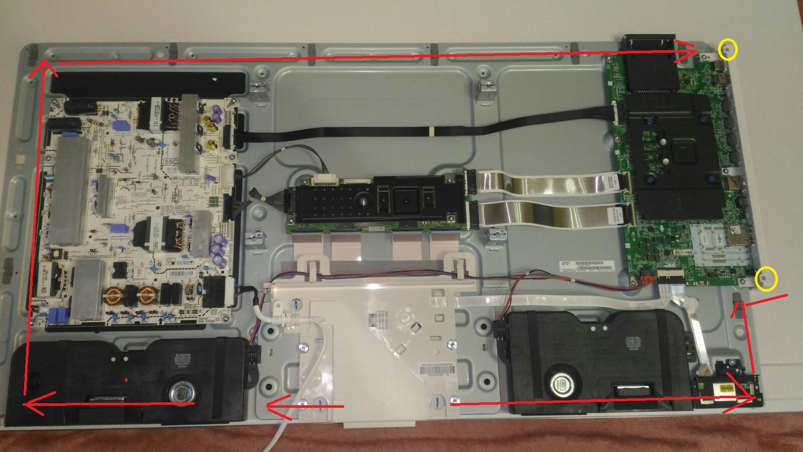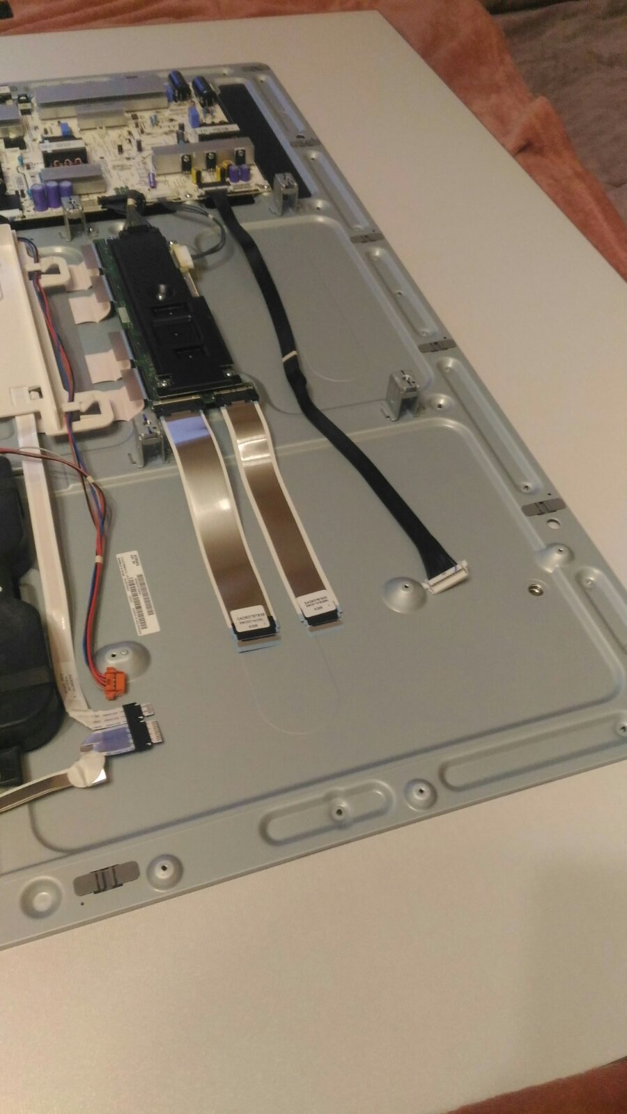 По итогу крышка снимается и мы видим внутренности телевизора.