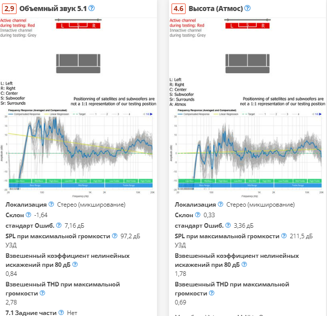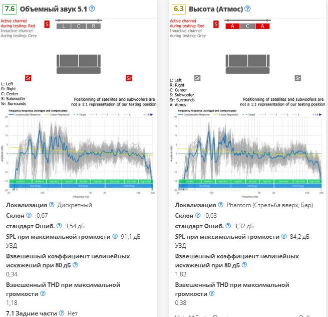 Samsung HW-S800B также может воспроизводить контент Dolby Atmos, который вы найдете на многих потоковых платформах. Он более совершенен, чем объемный звук 5.1, и использует аудиотехнологию для создания иллюзии того, что звук окружает вас и простирается над вами. В баре используются два направленных вверх драйвера, встроенных в сам бар, чтобы имитировать это ощущение «высоты». Частотная характеристика на этих каналах довольно сбалансирована, а это означает, что эти звуковые эффекты воспроизводятся четко, и у вас не возникает проблем с различением деталей в миксе.