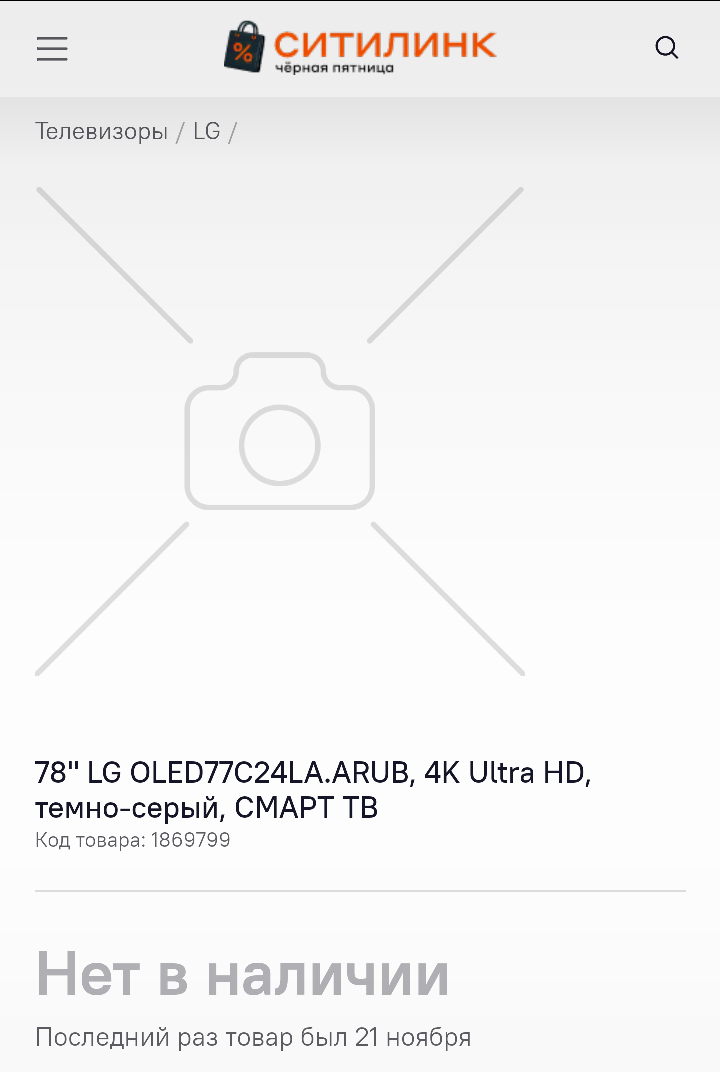 OLED48C24LA.ARUB из Ситилинк, у которого в описании значится "Гарантия СЦ производителя".
