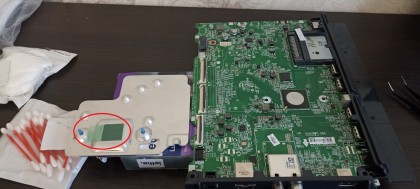 На днях менял прошивку и столкнулся с таким вот интересным брачком в ТВ из РП (на производстве забыли снять защитную пленку с термоклея) :mrgreen:
