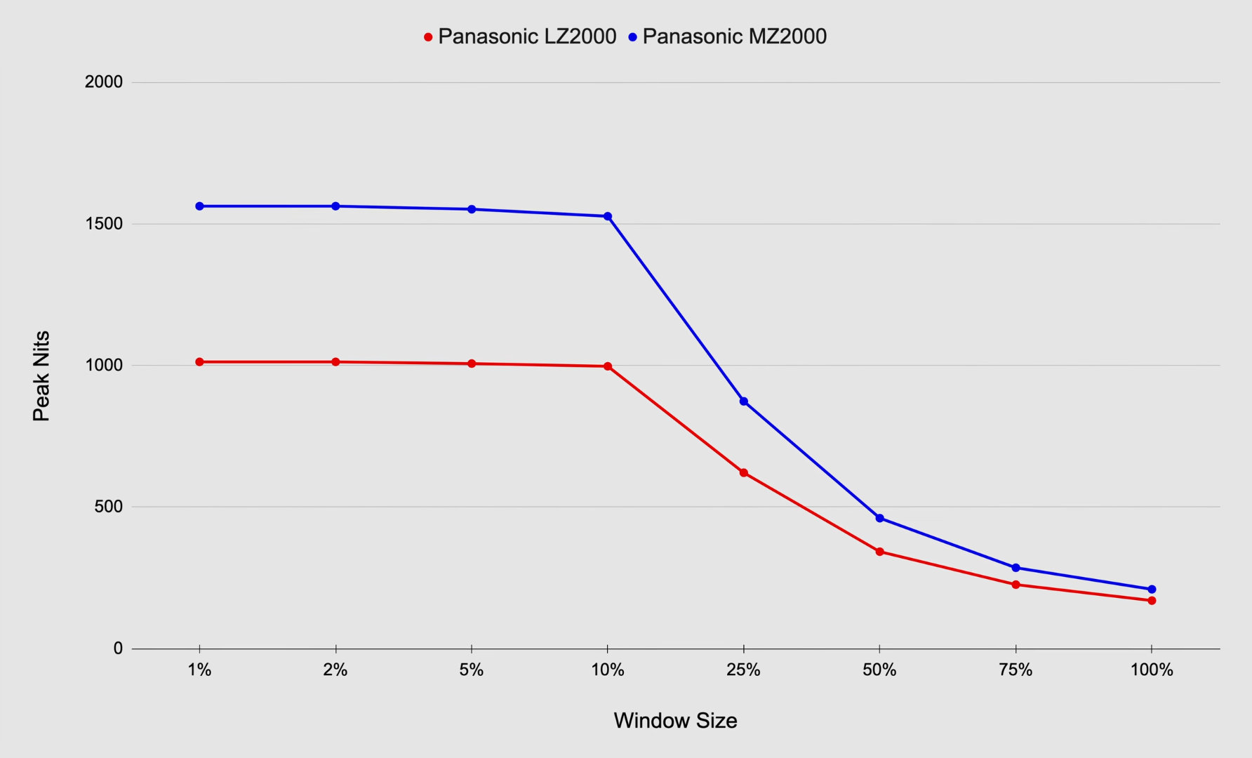 Пиковая яркость Panasonic LZ2000 против Panasonic MZ2000