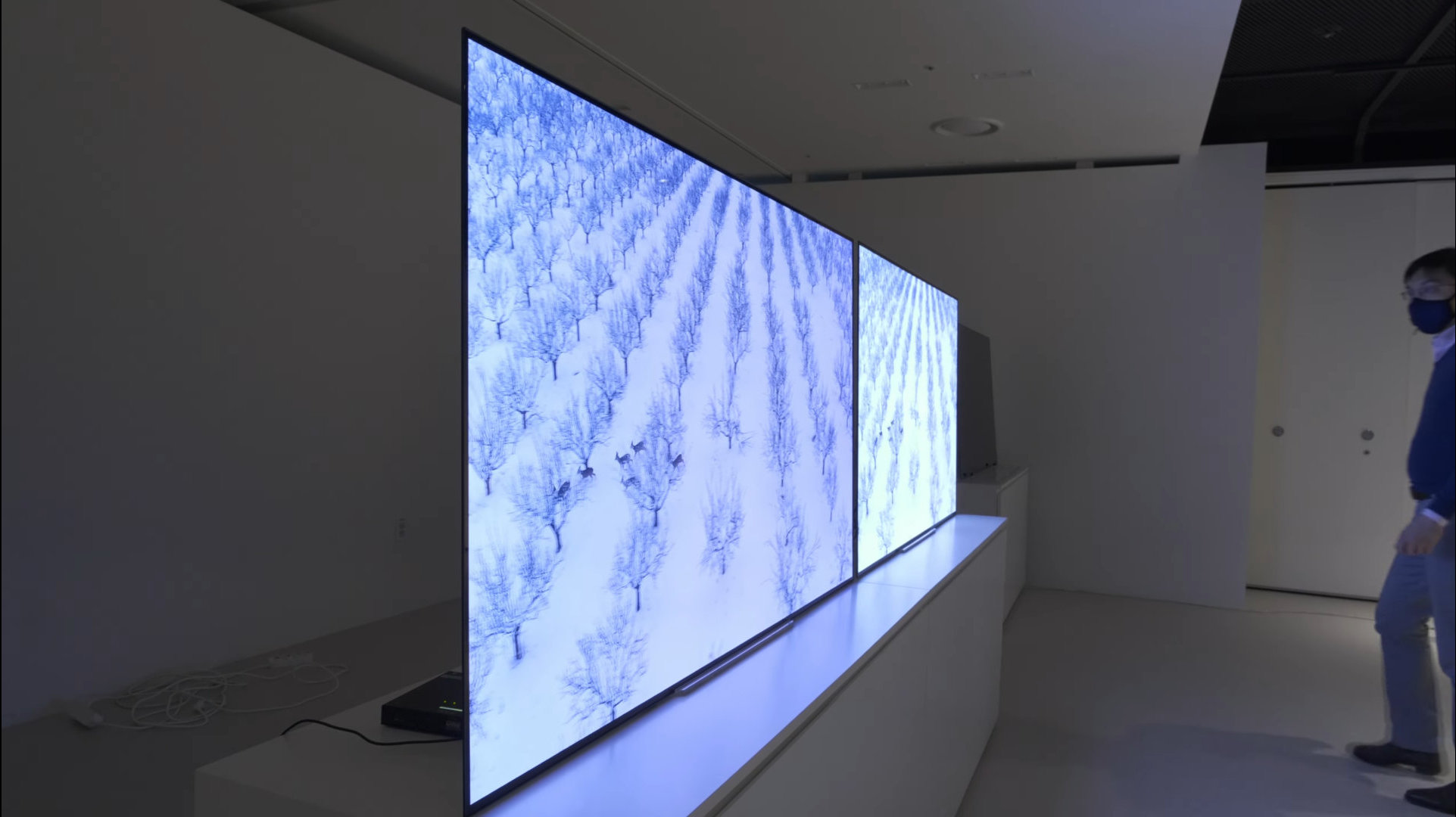 (2:58) С MLA миллиарды крошечных выпуклых линз наносятся на ОЛЕД-панель с использованием сверхточного рисунка эффективно создавая более 5000 микролинз/объективов на пиксель на 77-дюймовом дисплее 4К. Экраны меньшего размера будут иметь меньше микролинз на пиксель из-за более низкой светосилы пикселя.