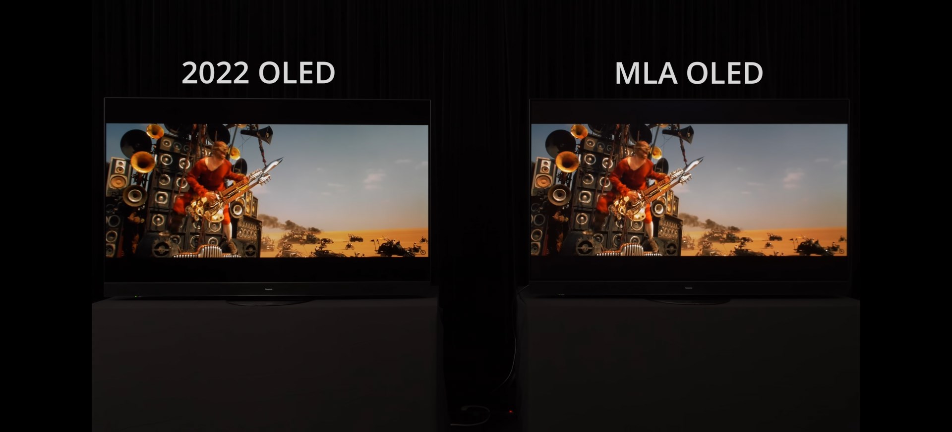 Компания Panasonic также публично признала, что ее флагман 2023 MZ2000 использует технологию MLA. Panasonic продемонстрировала 1500 нит в окне 10%, LG Electronics говорит о 1800 нит, а FlatpanelsHD показал 2100 нит, заявленных для режима яркого изображения LG.