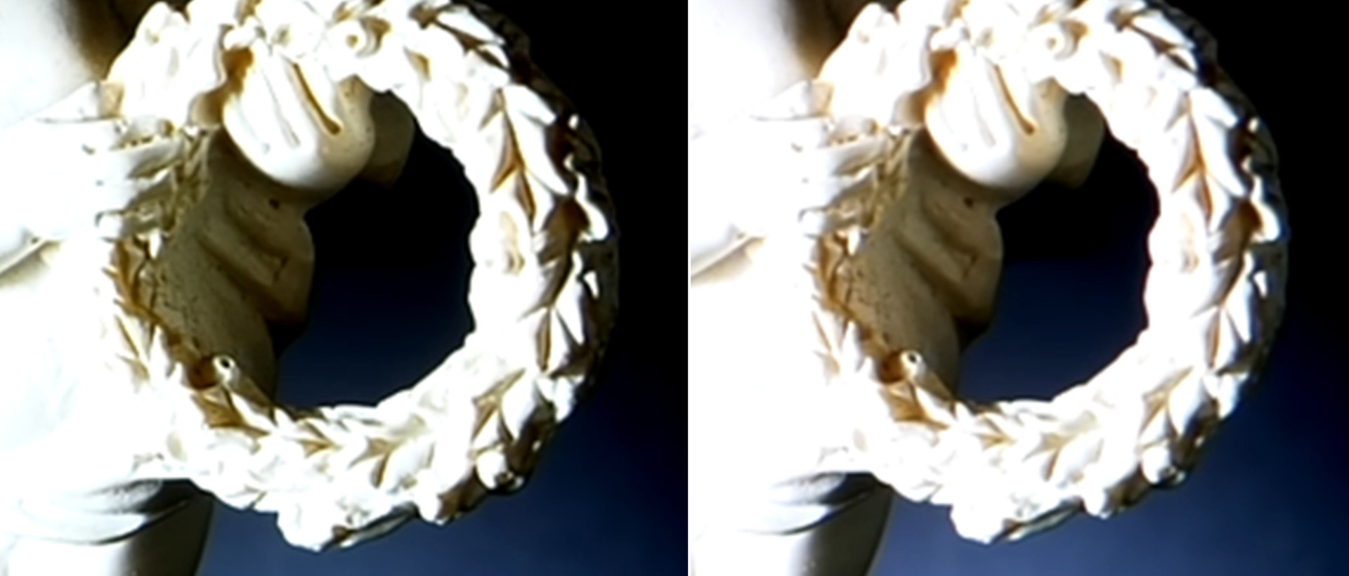 Ниже материал с AVForum из презентации Panasonic MLA, там вы также можете увидеть небольшую разницу в увеличении деталей при прямом сравнении, к сожалению, модель MLA здесь также немного переэкспонирована.