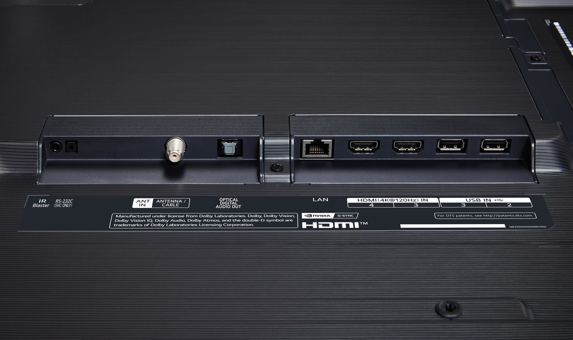 Нижняя панель телевизора LG G3 оснащена двумя входами HDMI v.2.1a, 2 антенными входами (для спутникового и кабельного/эфирного ТВ), двумя портами USB 2.0 и одним портом LAN (со скоростью 100 Мбит/сек). Что касается аудио, то на этой же панели расположен только оптический аудиовыход, выход 3,5" на наушники/акустику отсутствует.