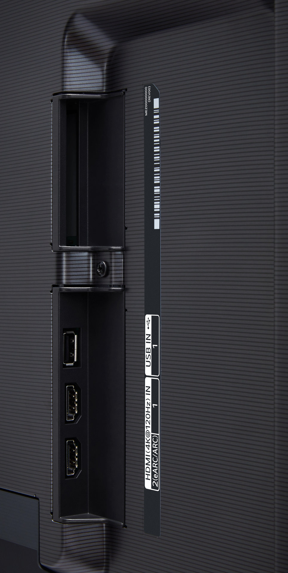 На боковой панели расположены два входа HDMI v.2.1a (один из которых совместим с ARC и eARC), один порт USB (версии 2.0) и слотом условного доступа CI+. Кроме того на борту имеются встроенные беспроводные модули Wi-Fi (с поддержкой стандартов 802.11a, 802.11b, 802.11g, 802.11n, 802.11n 5 ГГц, 802.11ac, 802.11ax, Wi-Fi Direct) и Bluetooth (поддерживается сопряжение с совместимыми устройствами по протоколу Bluetooth 5.2).