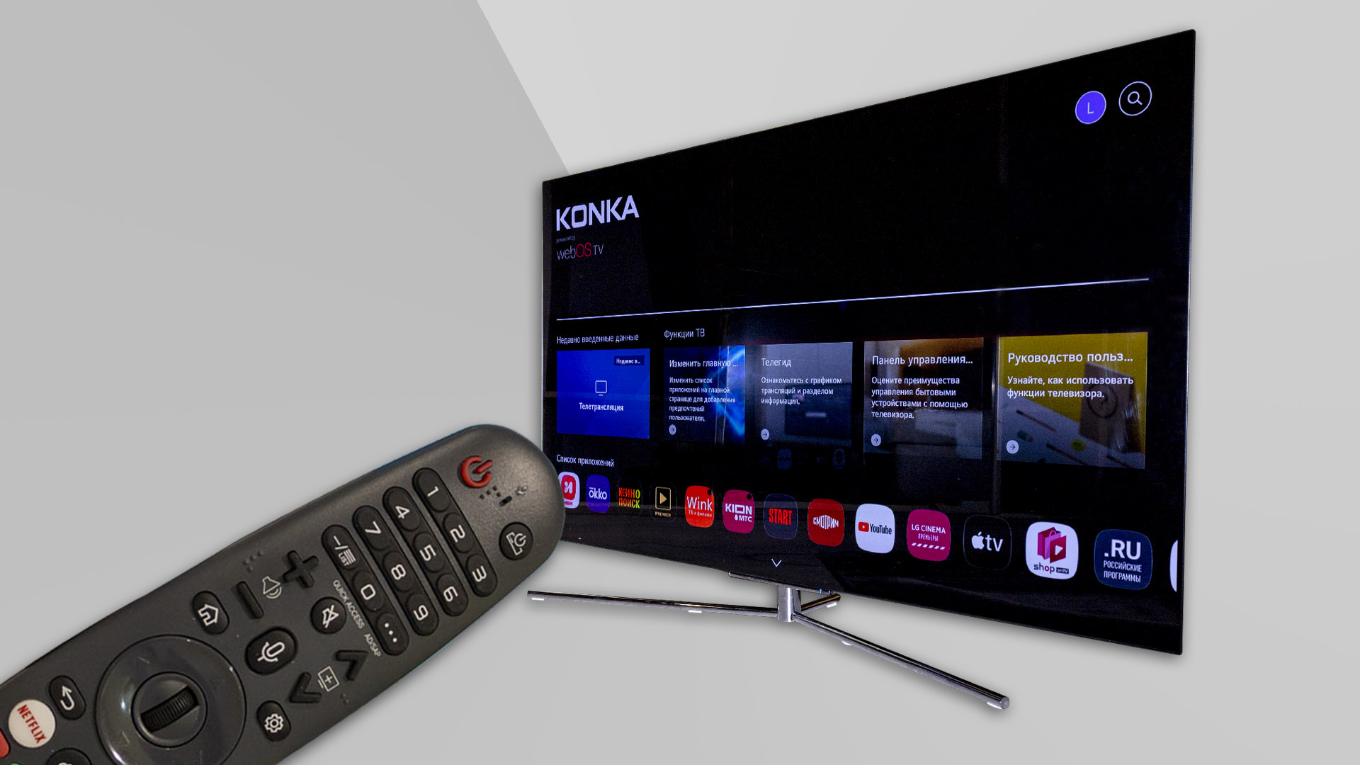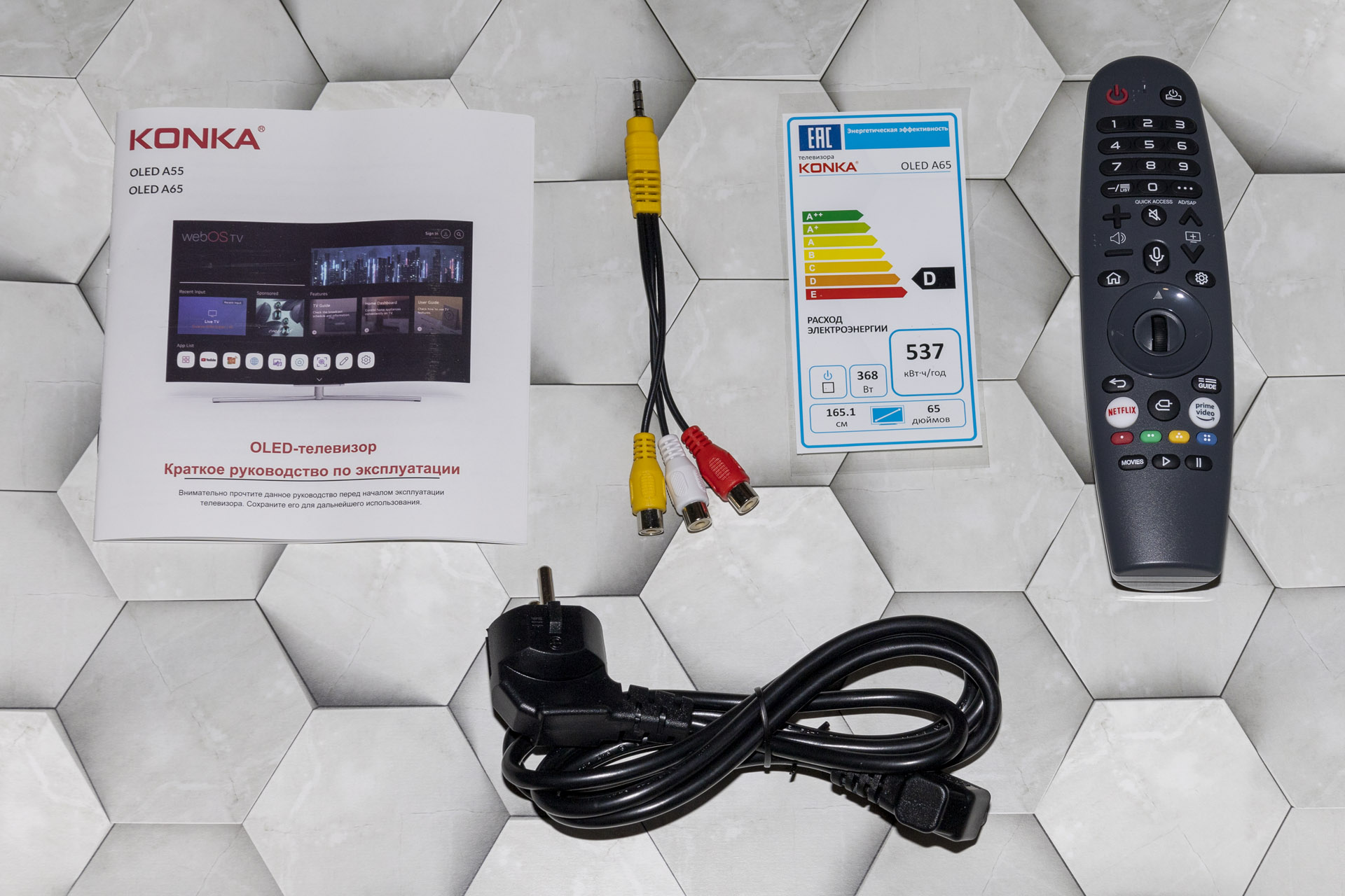 Дизайн и комплектация Героя обзора часто сравнивают с телевизорами от LG. Внешне Konka A65 действительно напоминает более дорогие модели корейского производителя, как есть и много других сходств — матрица, пульт и операционная система.