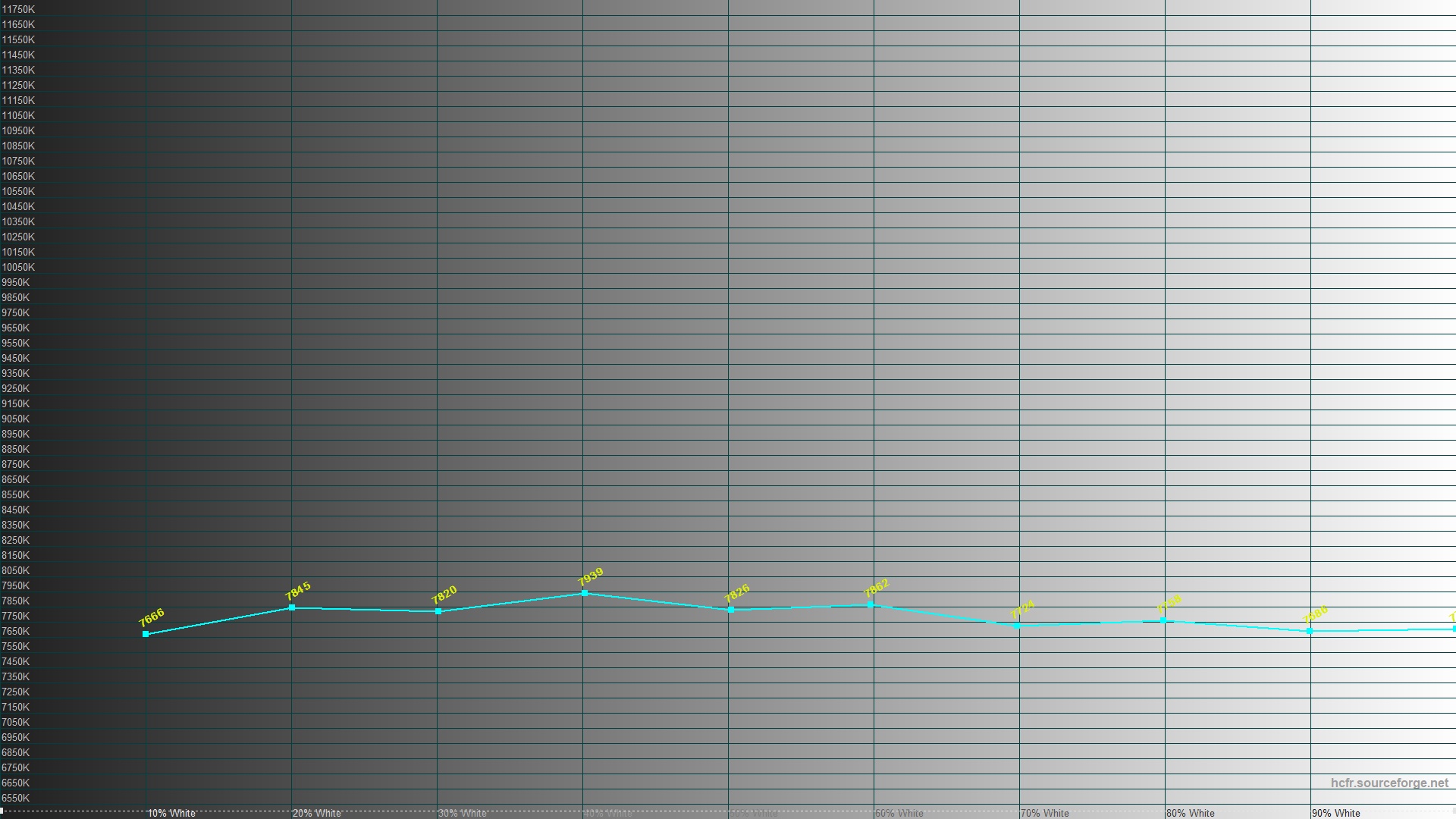 Цветовой охват автоматически меняется в зависимости от отображаемого контента, во всяком случае так происходит при подключении к ПК через HDMI. В первом случае охват экрана близок к охвату цветового пространства sRGB — во всех доступных профилях («Яркий», «Стандартный», «Основной», «Кино», «Спорт», «Оптимизация игр») цветовая температура выше оптимальных 6500K, что удаётся отрегулировать через настройку «Баланс белого», выставив значение цветовой температуры минус 38. В этом случае отклонение Delta E в тесте Color Checker снижается с 6.6 до 4.5. Это тоже выше нормы, но явных проблем с цветопередачей нет.