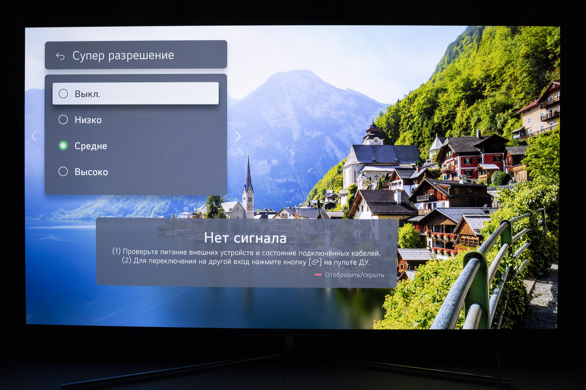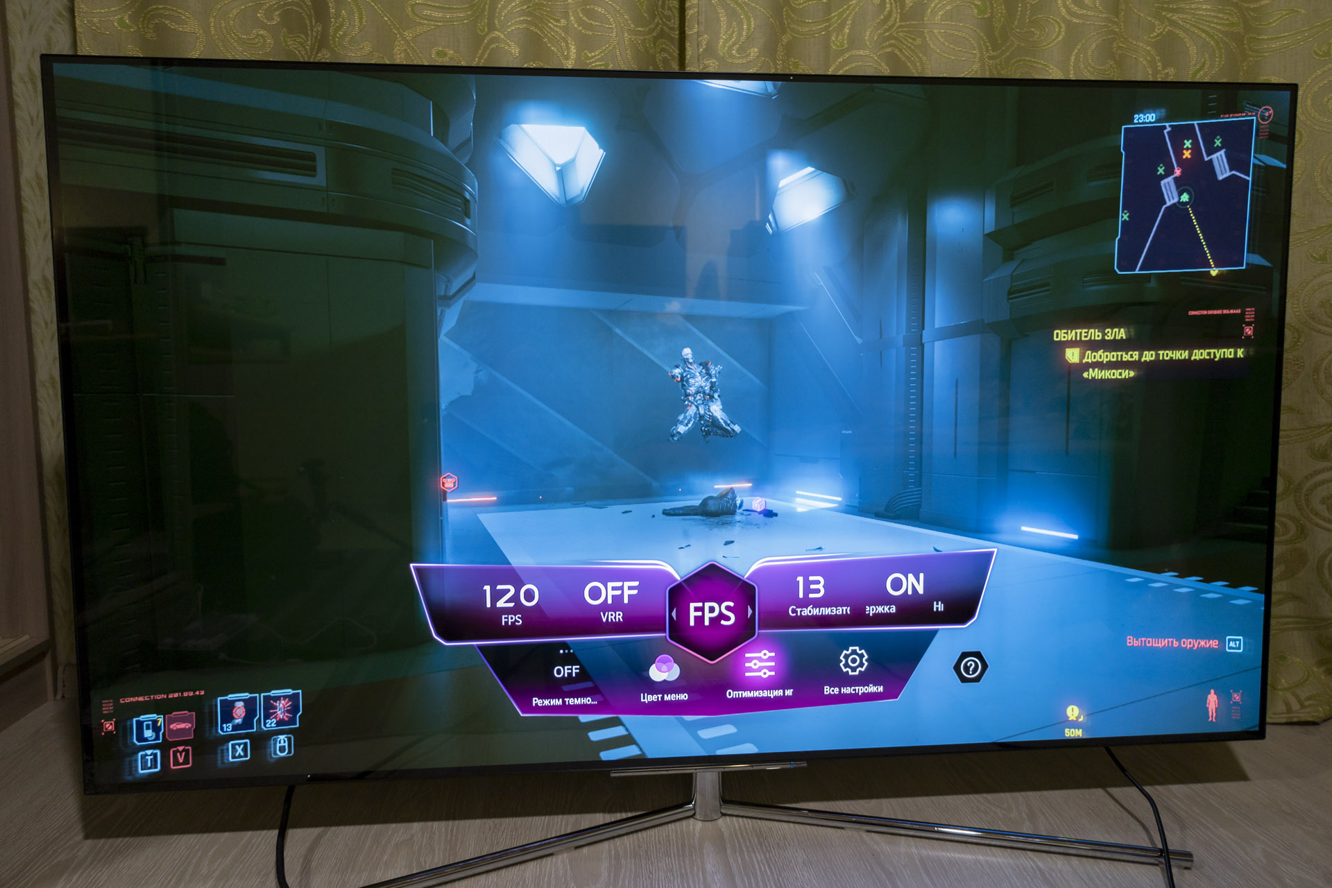 Обозреваемый телевизор поддерживает частоту обновления 120 Гц при максимальном разрешении, когда ещё можно включить HDR с глубиной цвета 10 бит. Узнать о том, что отображаемый контент поддерживает HDR10 и Dolby Vision можно по значкам, на какое-то время появляющимся в правом верхнем углу дисплея.